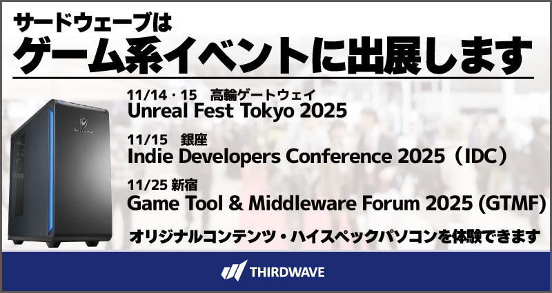 - 【サードウェーブ】ゲーム系イベントに出展 ゲーム制作者・パブリッシャー・ユーザーが参加するベントでハイスペックな製品を実際に体感ください